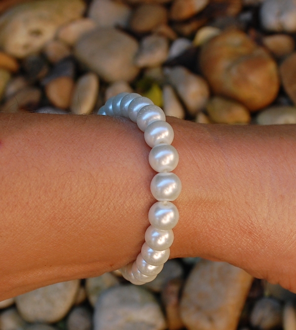 Perlový biely náramok s leskom.
