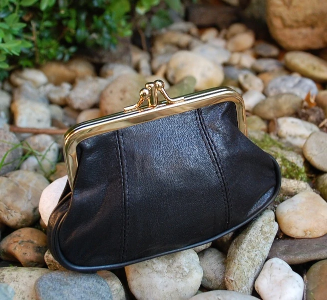 Dámska čierna kožená malá peňaženka na mince, prípadne rôzne drobnosti, ozdobne štepovaná, zlaté kovanie, dva samostatné priečinky s kovovým uzáverom, oddelenie na zips a malé vrecko na zips.