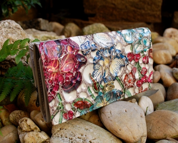 Dámska luxusná peňaženka s kvetmi z kože.