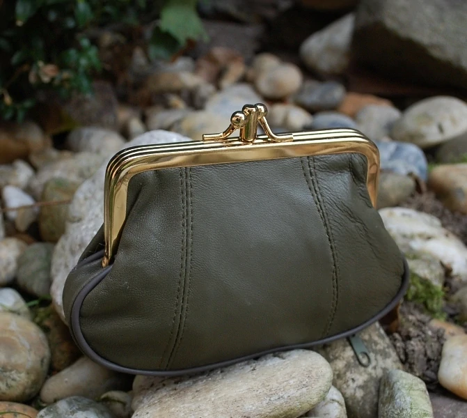 Dámska zelená kožená malá peňaženka na mince, prípadne rôzne drobnosti, ozdobne štepovaná, zlaté kovanie, dva samostatné priečinky s kovovým uzáverom, oddelenie na zips a malé vrecko na zips.