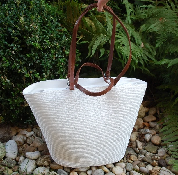 Kabelka biela pletená hnedé koňakové rúčkySkladom26,00 EUR/ ks