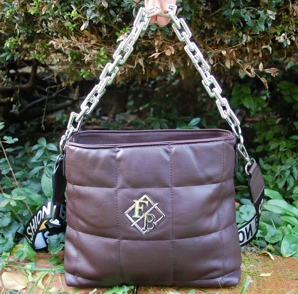 Hnedá matná prešívaná jednoduchá crossbody kabelka s ozdobnou retiazkou.