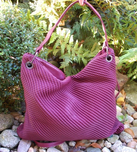 Bordová kabelka, pekná výrazná farba a jemný lesk, plastický prepletaný vzor po celej kabelke.