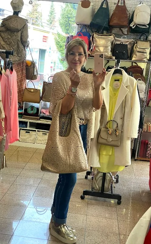 Kabelka veľká a v nej menšia, ktorá slúži ako organizér vo veľkej kabelke, ale dá sa nosiť samostatne.