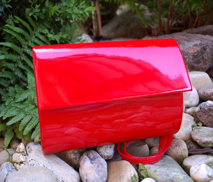 - Kabelka listová červená laková dlhé ramienko