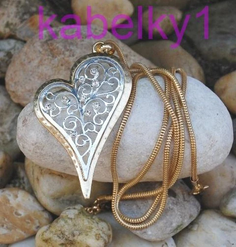 - Náhrdelník zlatý strieborné srdiečko s ornamentom a sklom