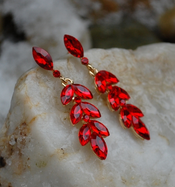 Náušnice červené brúsené sklo zlatý podkladSkladom12,00 EUR/ ks