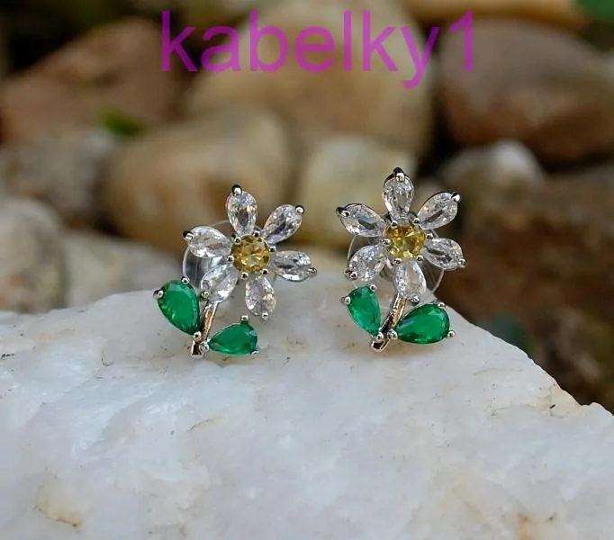 Náušnice strieborný kvietok zelené lístočky brúsené skloSkladom10,00 EUR/ ks