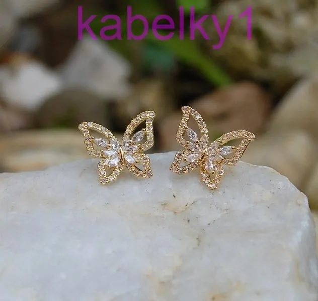Náušnice zlatý motýlik zdobený brúseným sklom :)