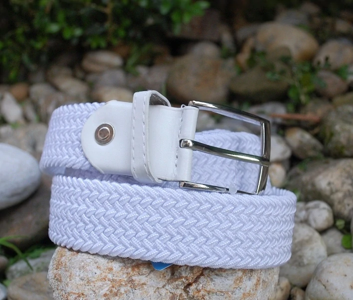 - Opasok unisex biely pletený pružný strieborné kovanie
